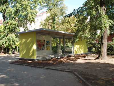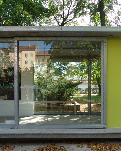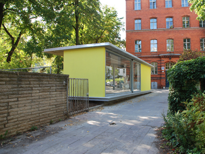 | Architektur: C. Zillich in Arbeitsgemeinschaft mit A. Partenheimer >> Tragwerksentwurf: A. Fromm Generalübernehmer: J. Liess Bauausführung: M. Schlaßus Bauherr: Milchhof e.V. Schwedter Strasse 232 10435 Berlin >> Wettbewerbsbeitrag Michhof-Pavillon 2008 >> | >> |